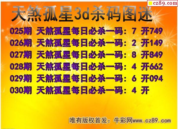 牛彩版3D预测彩报图25年327期打印版