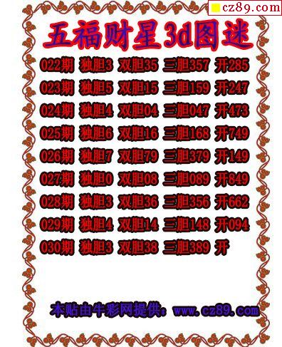 福彩3D2025327期牛彩图谜预测汇总