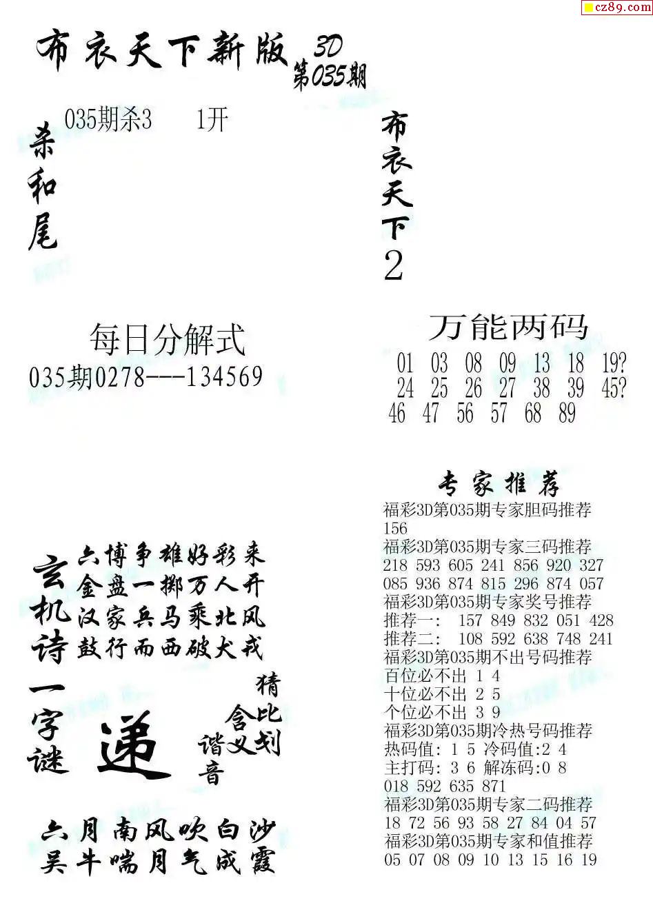 牛彩版3D字谜彩报图25年339期打印版