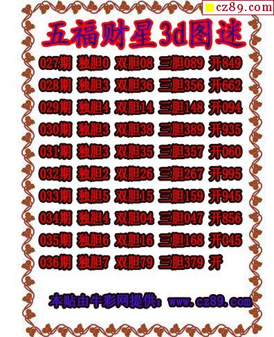 2025334期3d图谜汇总(五)