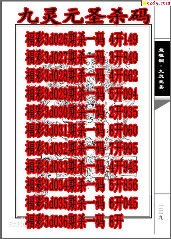 九灵元圣杀码2025334期3d图谜(原创)