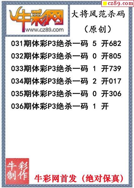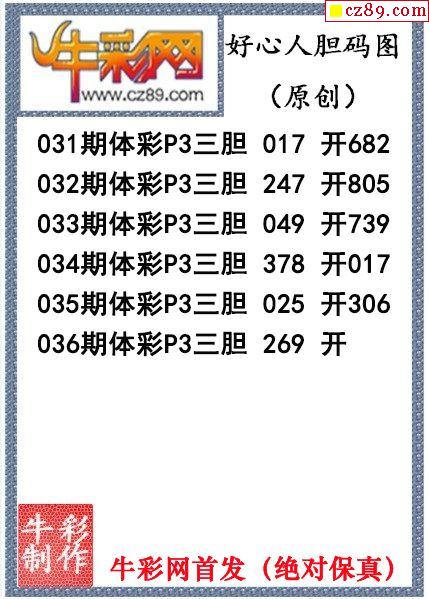 2024年036期体彩P3胆码杀码原创图总汇
