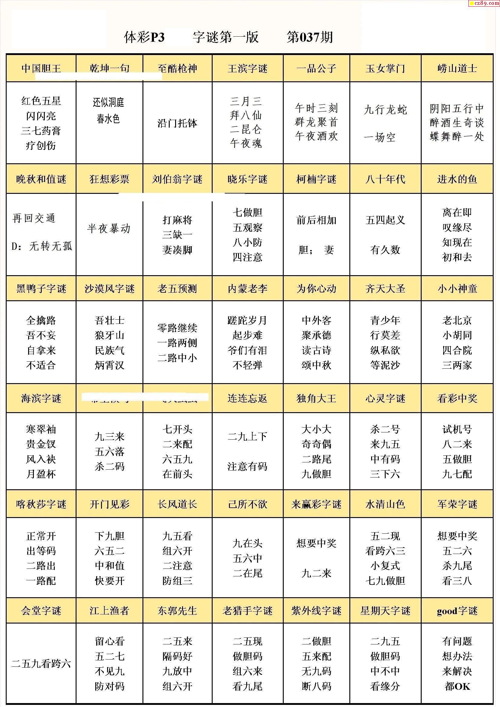 2024年037期牛彩网体彩P3画迷图谜汇总分享