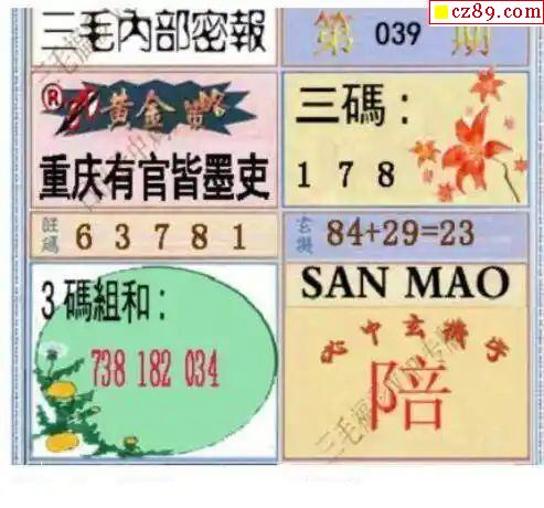 三毛图2024039期3d图谜