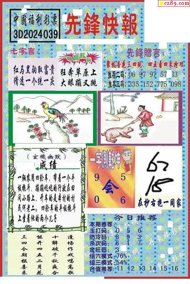 牛彩版3D字谜彩报图25年332期打印版