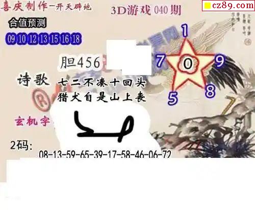白老图2024040期3d图谜
