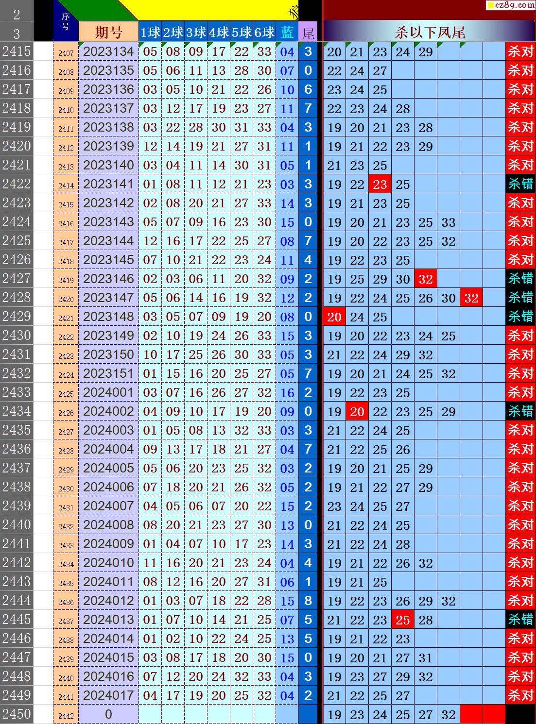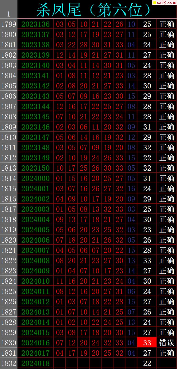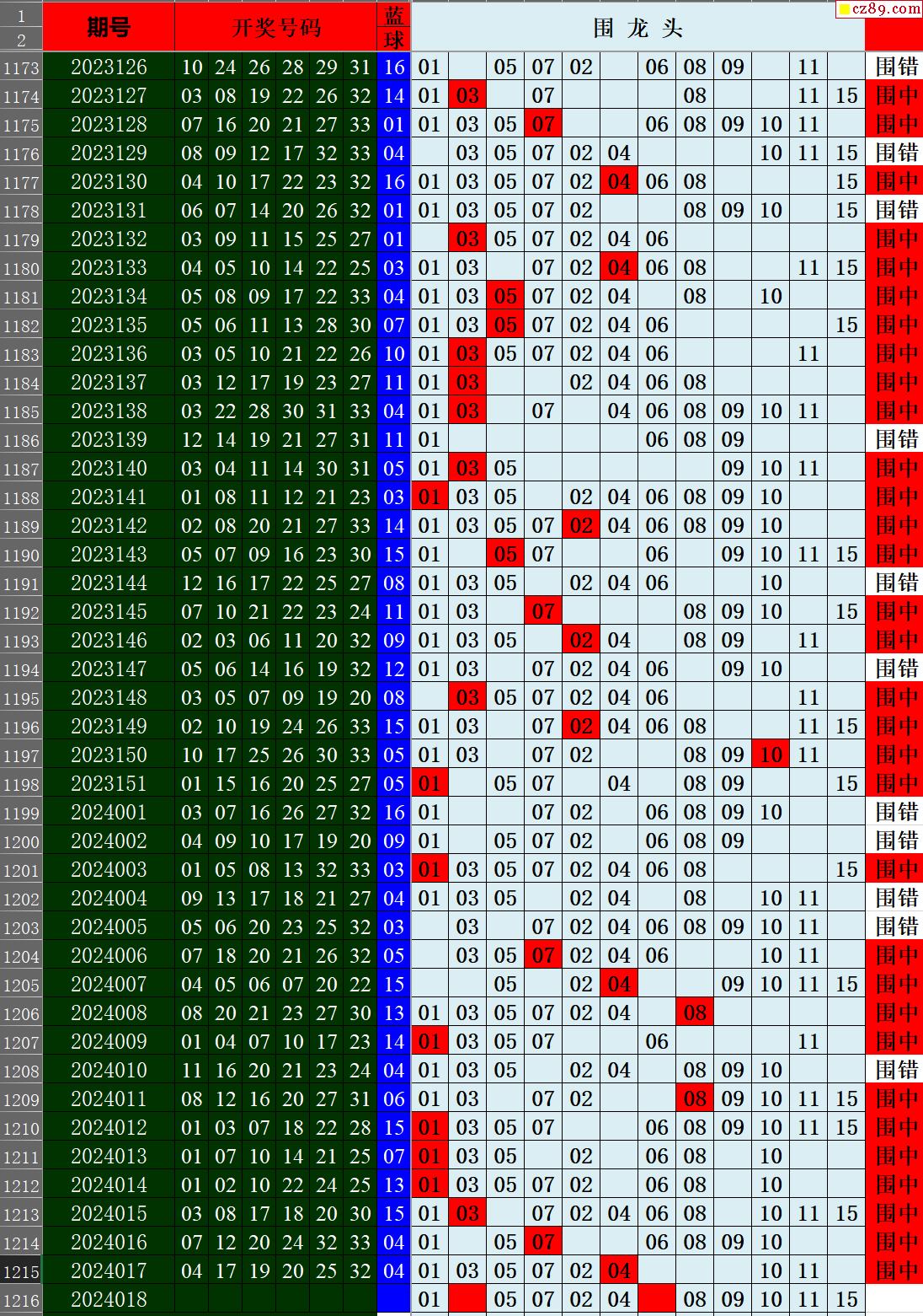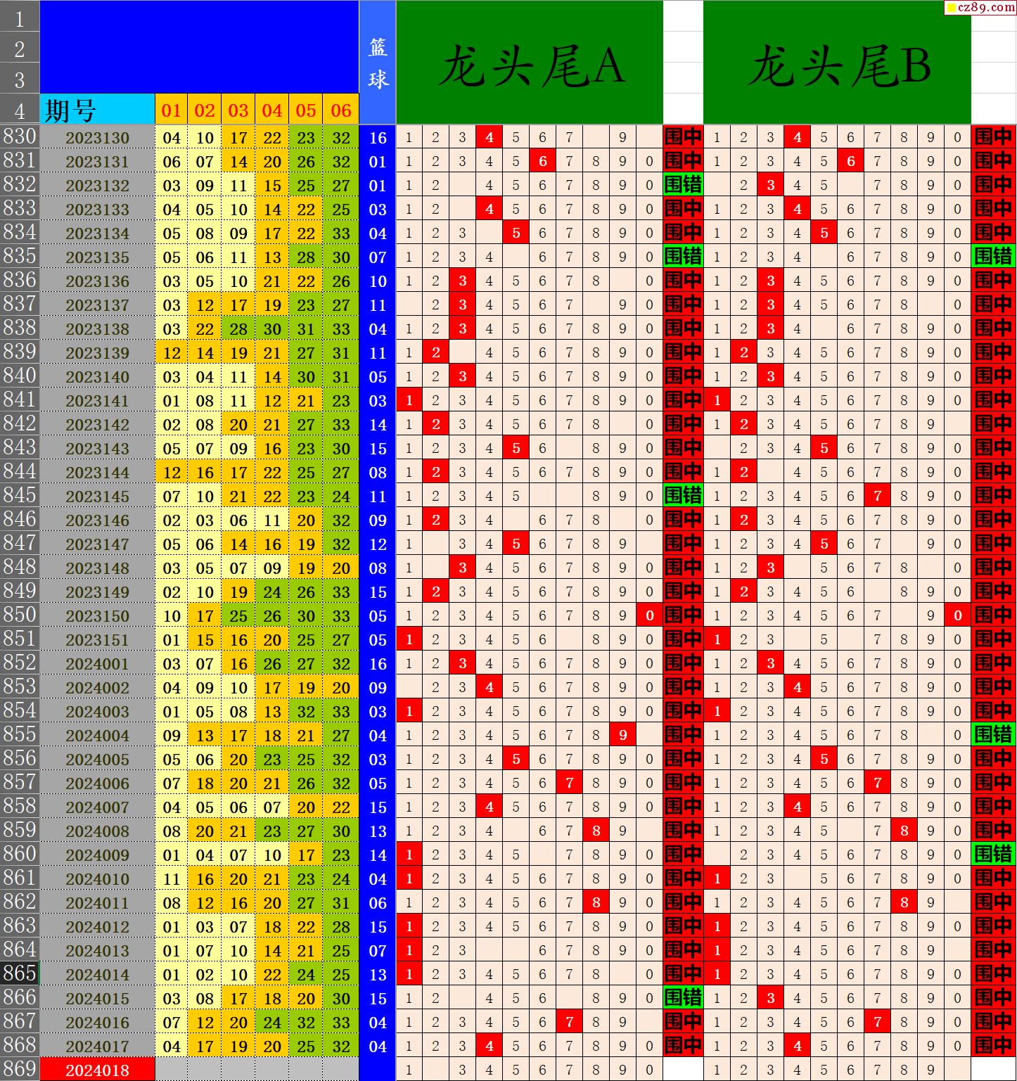 24年018期秋雨龙头凤尾走势图表