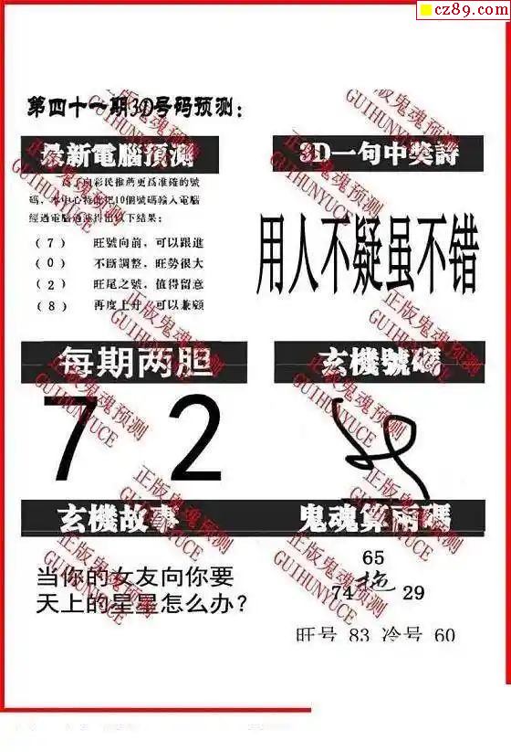 福彩3D2025332期牛彩图谜预测汇总