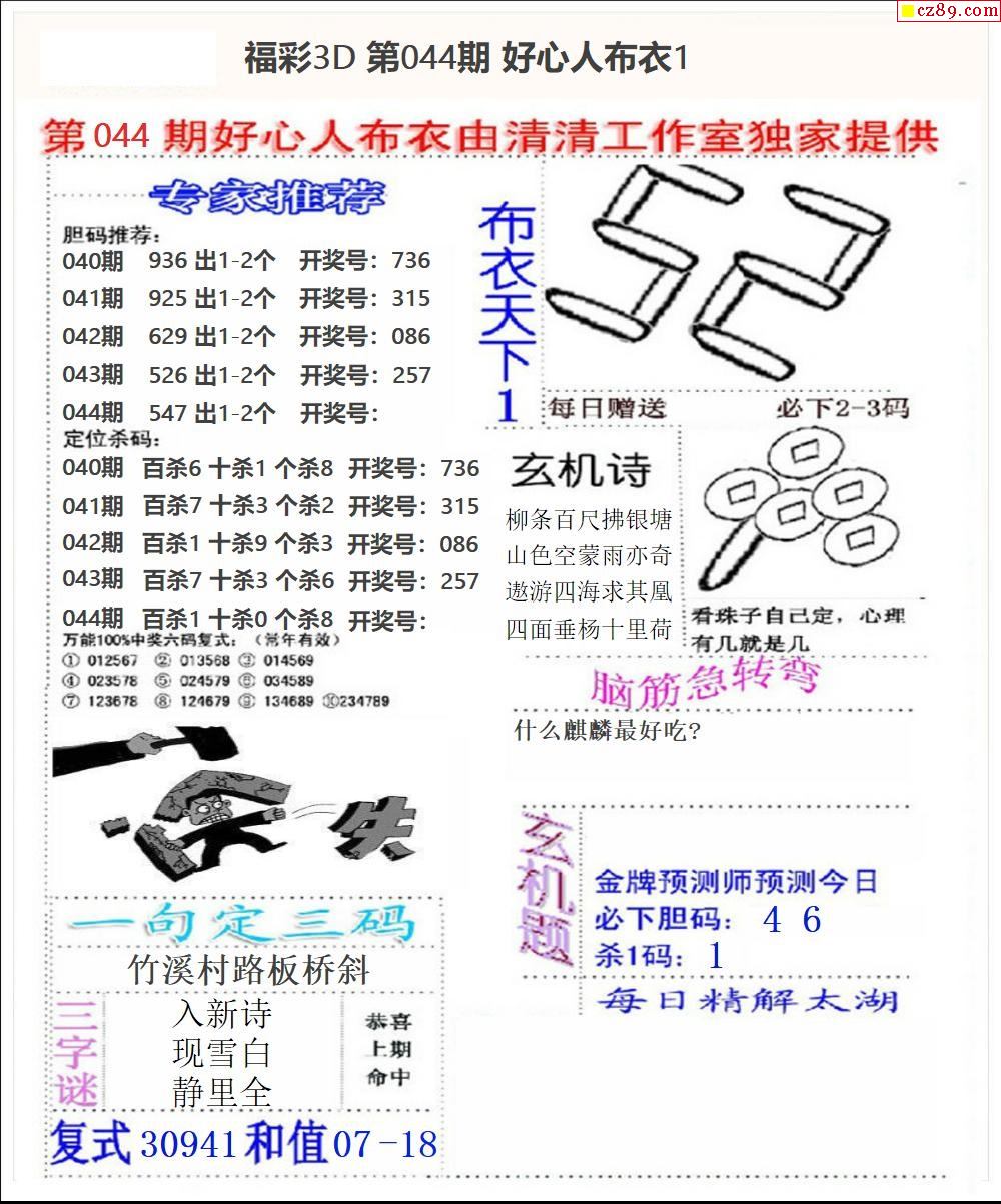 福彩3D2025334期 祁连牧哥百财纳福胆码图谜推荐