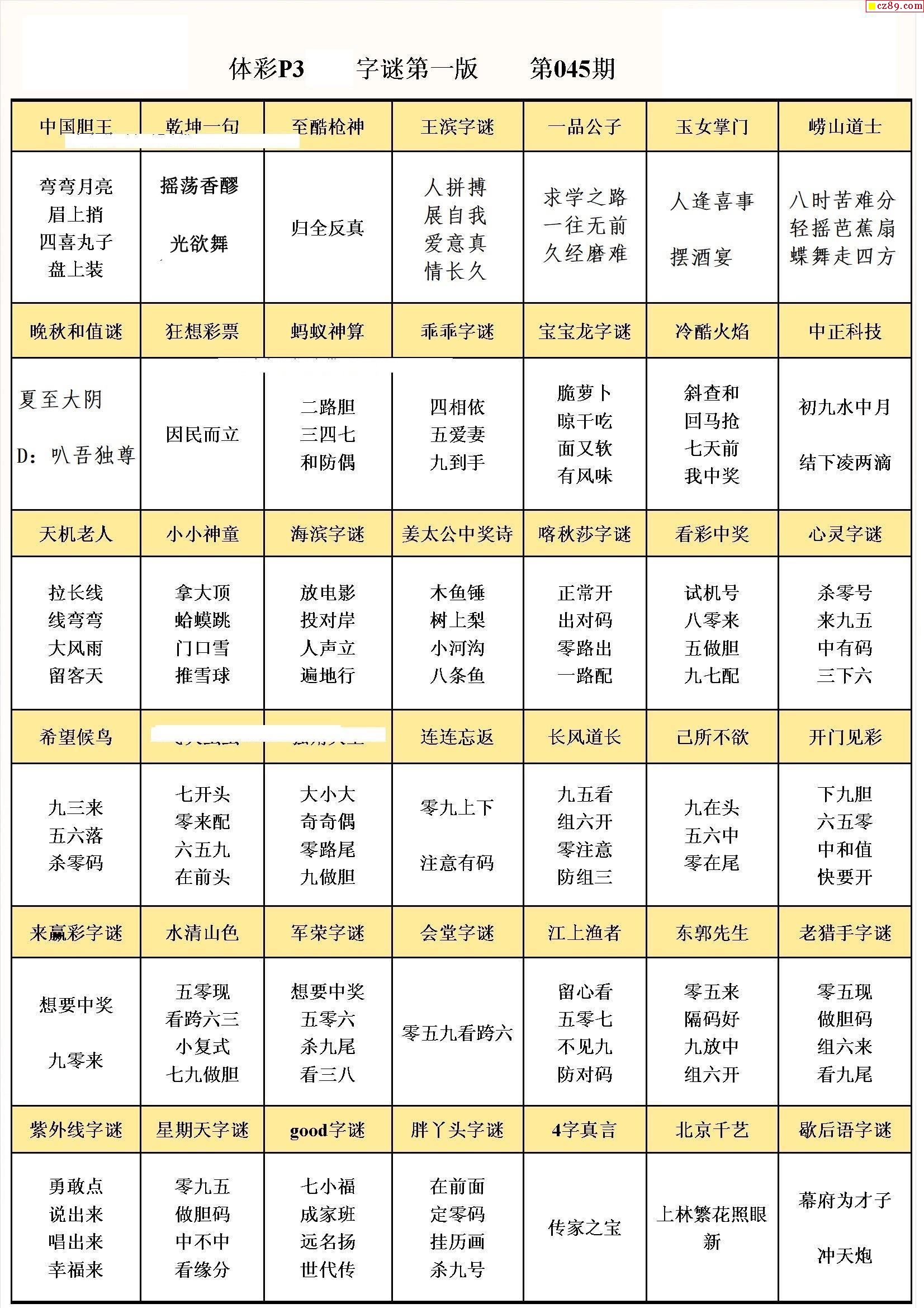 2024年045期牛彩网体彩P3画迷图谜汇总分享