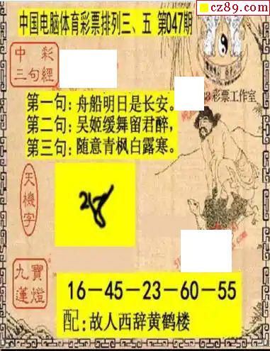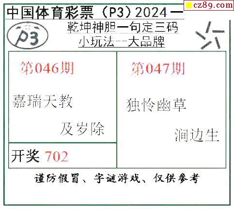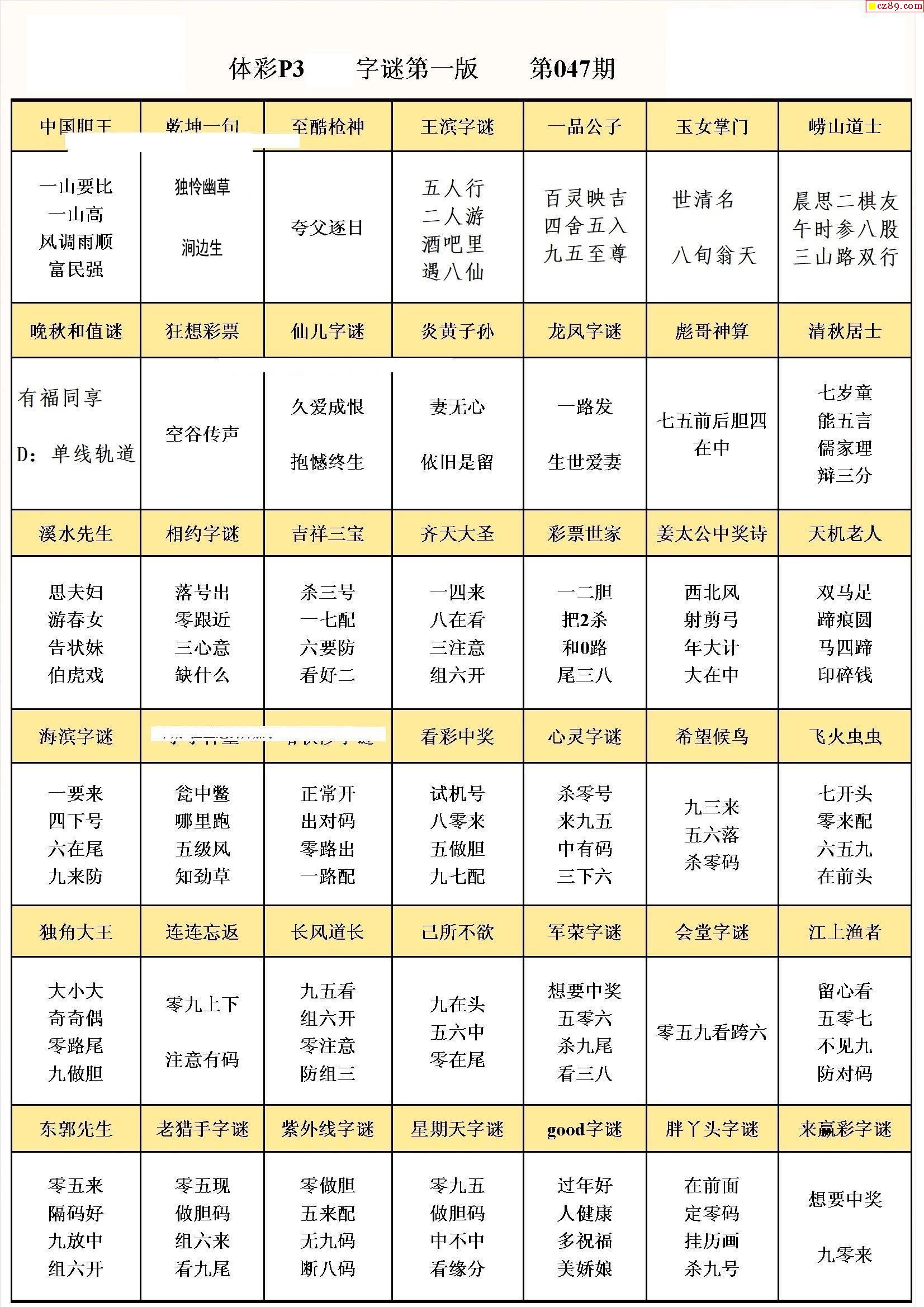 2024年047期牛彩网体彩P3画迷图谜汇总分享