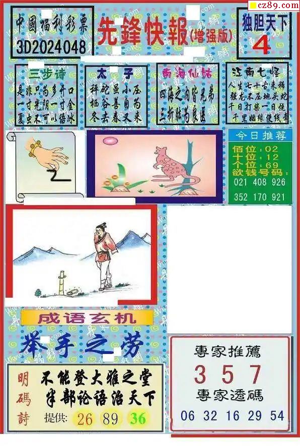 东哥说彩2025328期3d图谜