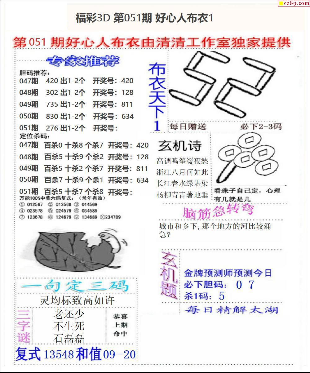福彩3D2025342期 祁连牧哥百财纳福胆码图谜推荐