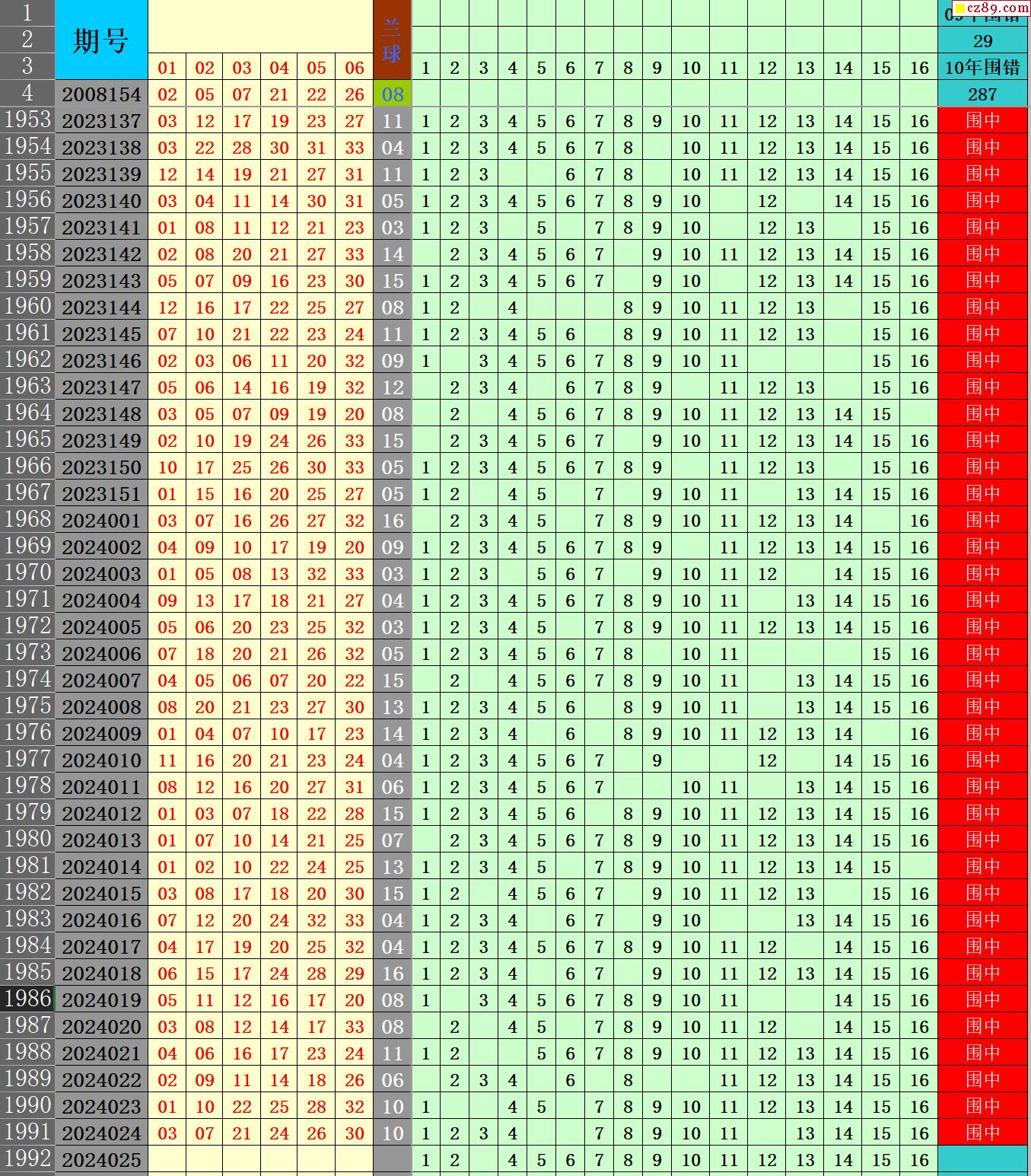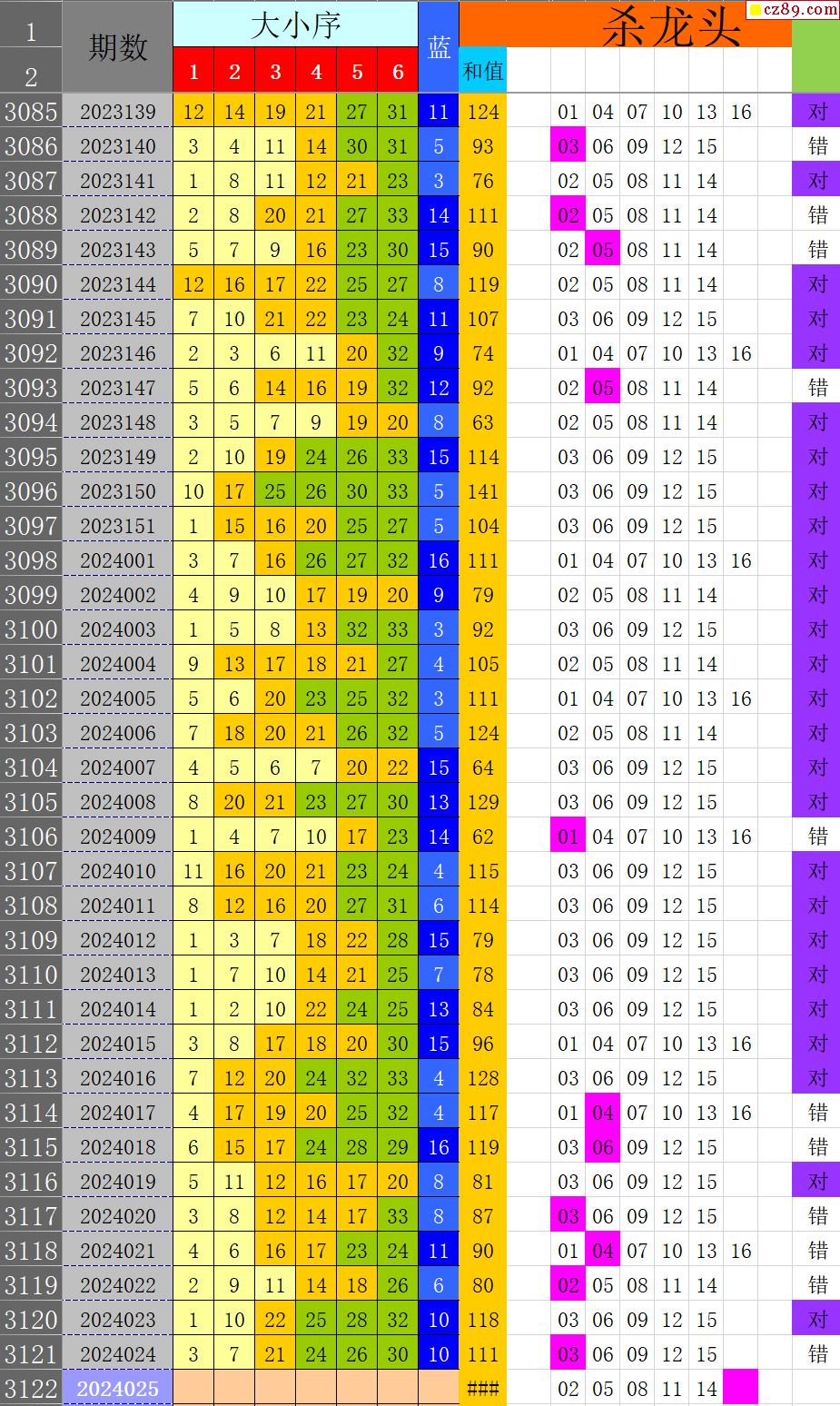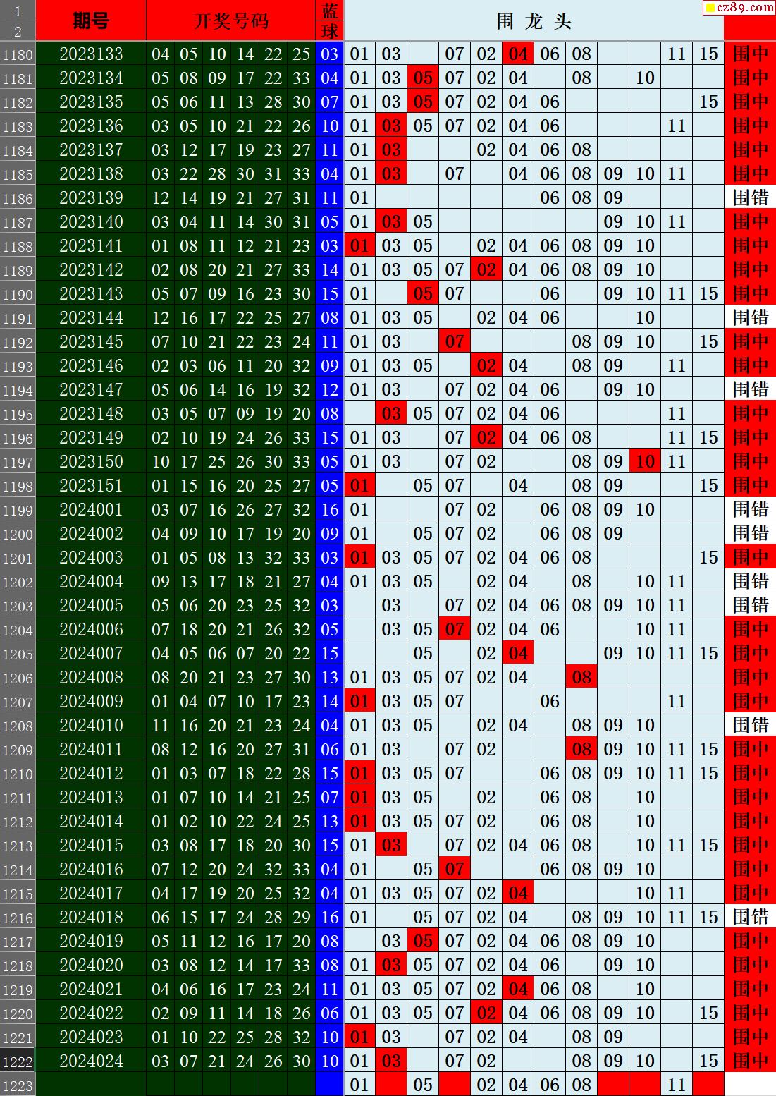 24年025期秋雨龙头凤尾走势图表