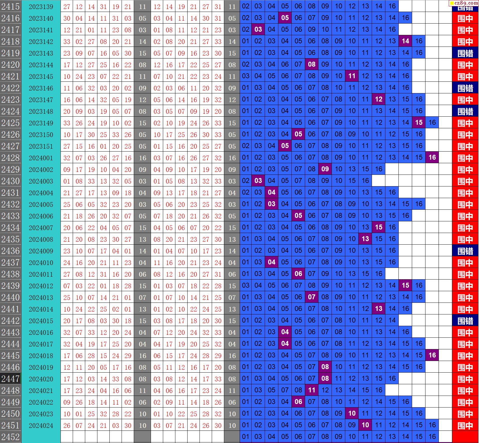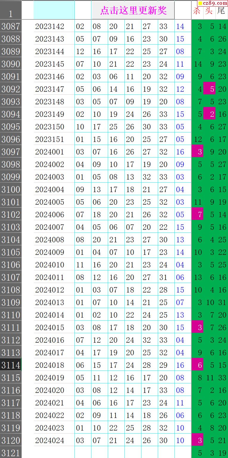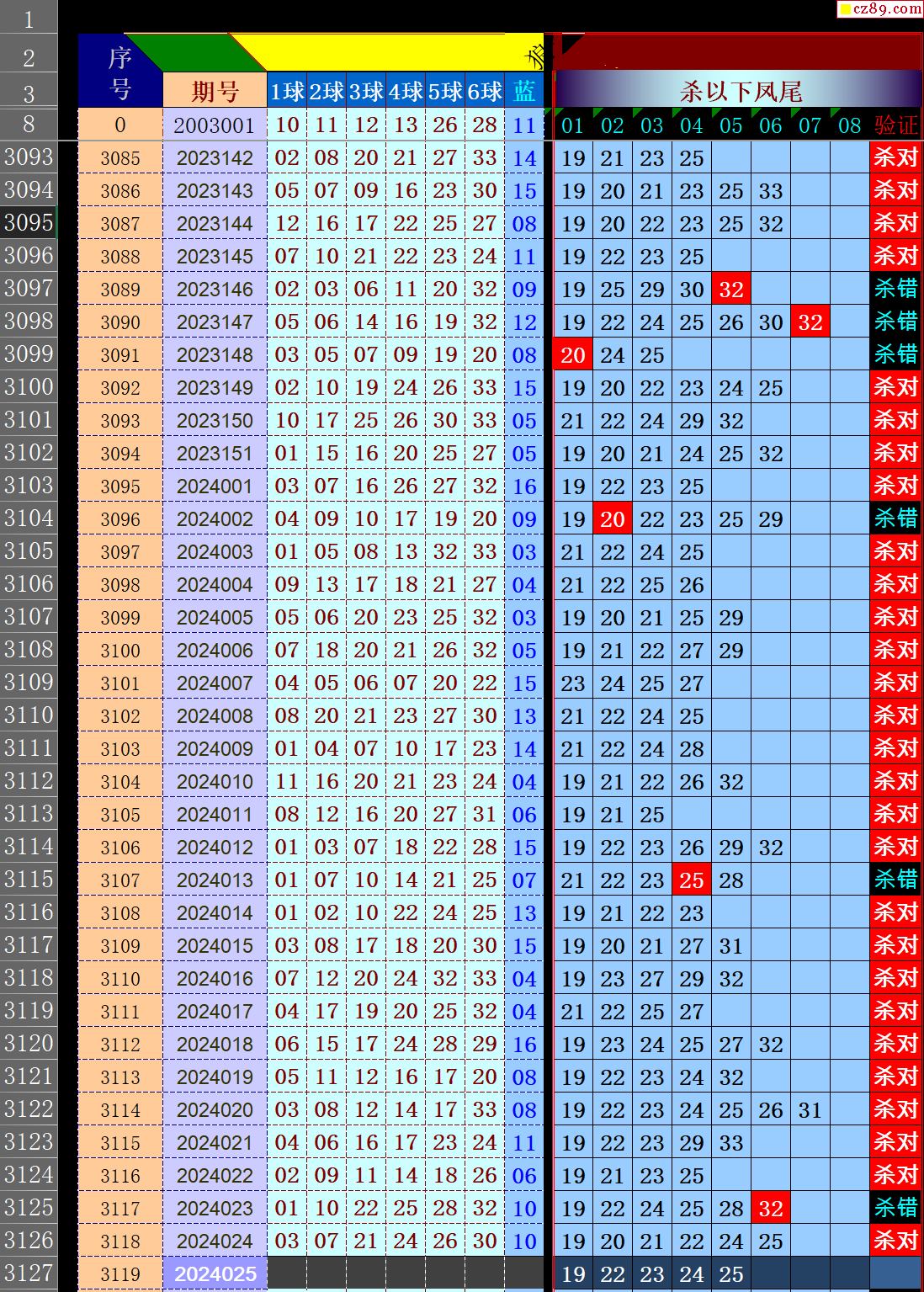 24年025期秋雨龙头凤尾走势图表