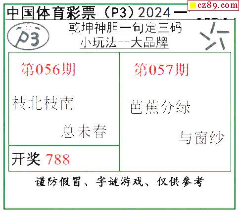 2024年057期牛彩网体彩P3画迷图谜汇总分享