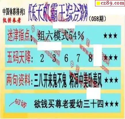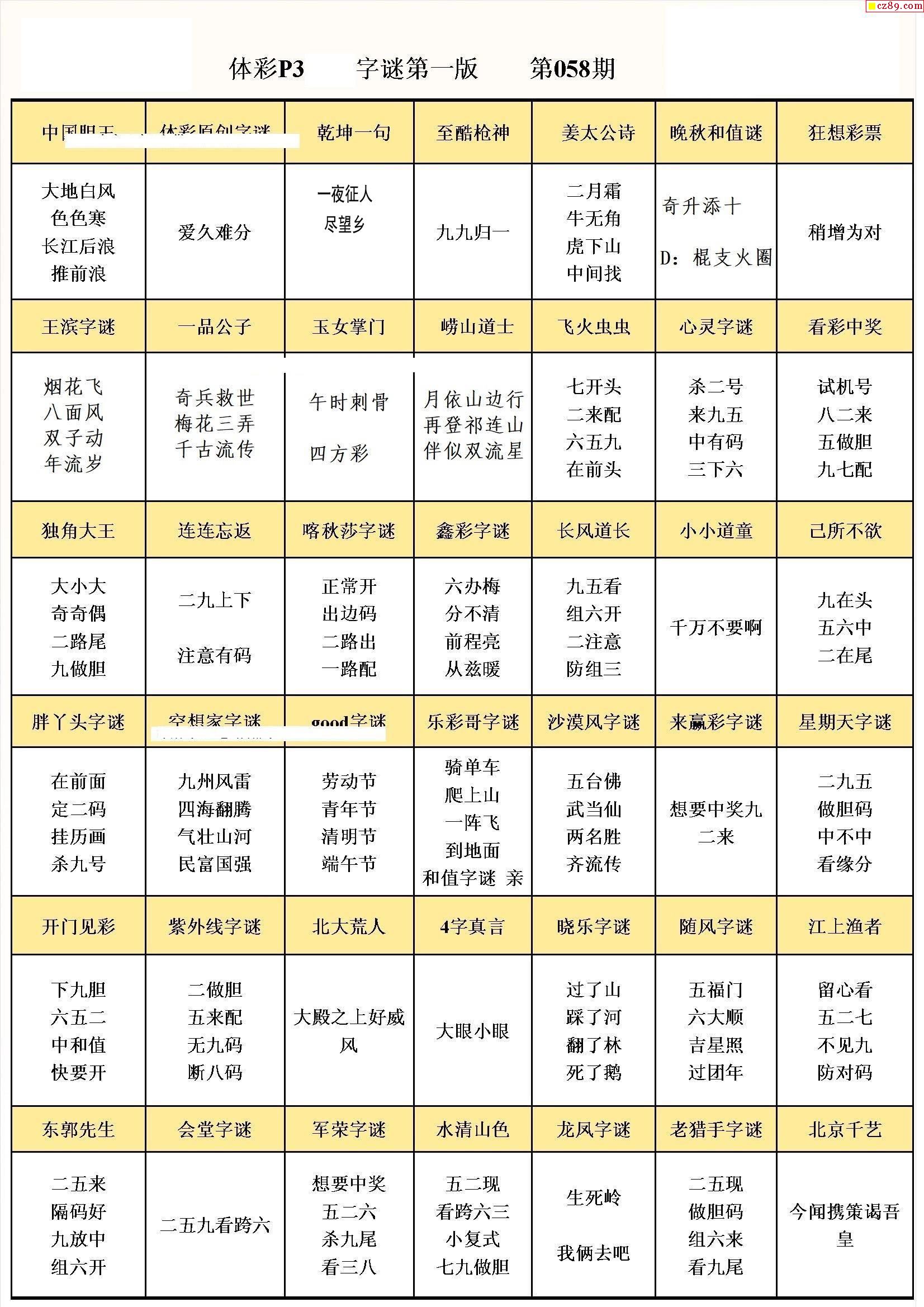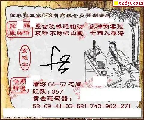 2024年058期牛彩网体彩P3画迷图谜汇总分享