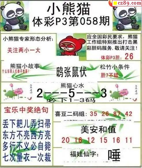 小熊猫2025328期体彩P3图谜