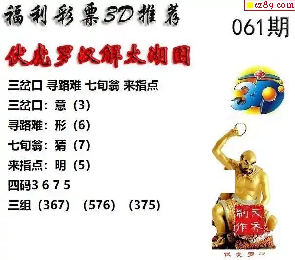 福彩3D2025337期 祁连牧哥百财纳福胆码图谜推荐