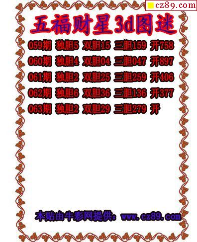 福彩3D2025332期 祁连牧哥百财纳福胆码图谜推荐
