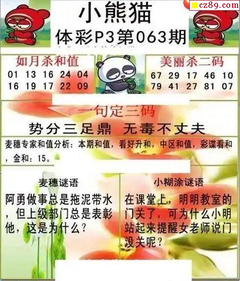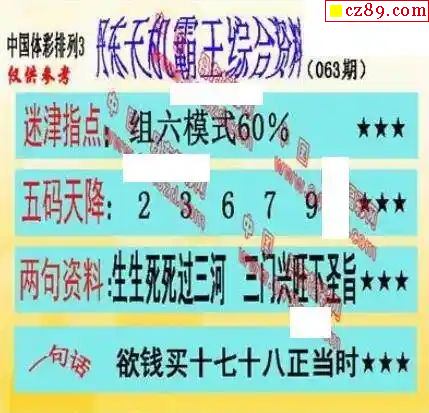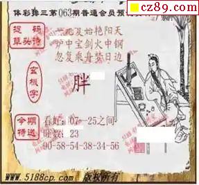 2024年063期牛彩网体彩P3画迷图谜汇总分享