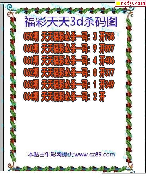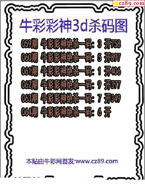 牛彩版3D预测彩报图25年327期打印版