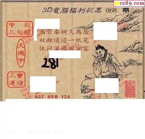 福彩3D2025329期 祁连牧哥百财纳福胆码图谜推荐