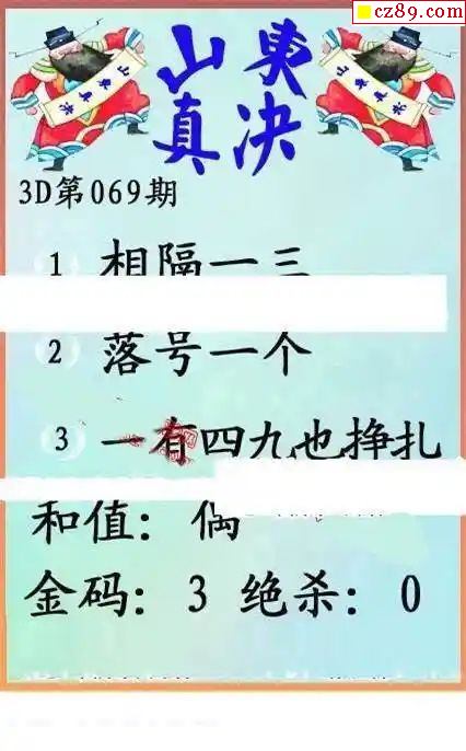 福彩3D2026014期 祁连牧哥百财纳福胆码图谜推荐