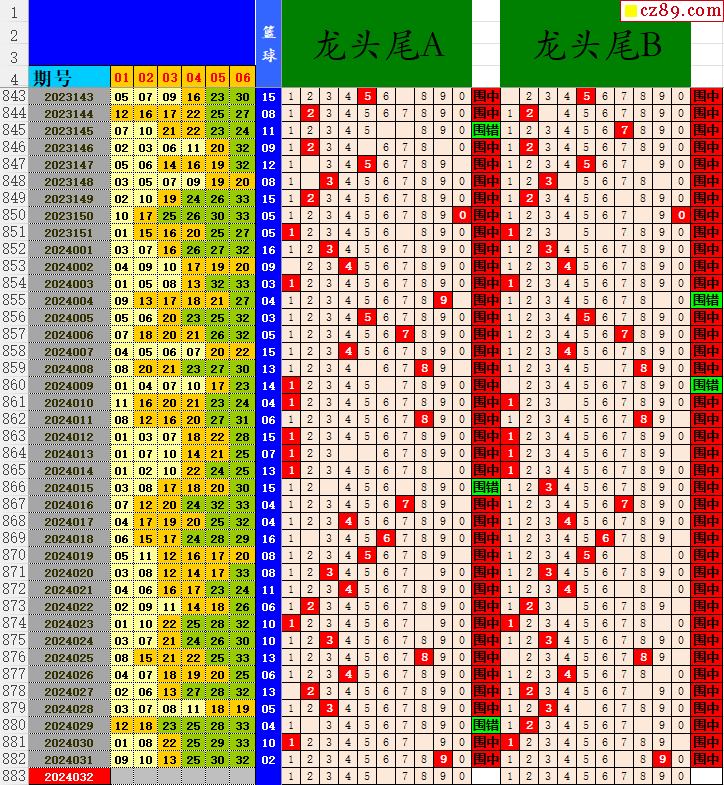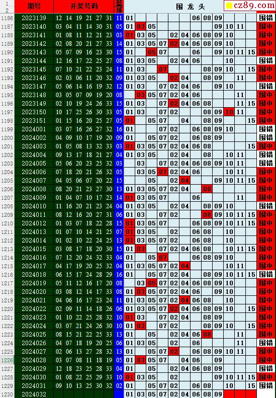 24年032期秋雨龙头凤尾走势图表
