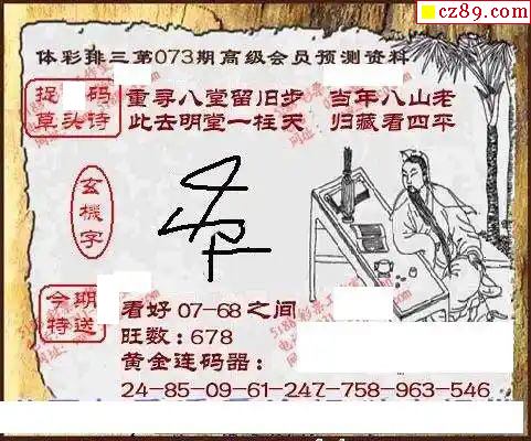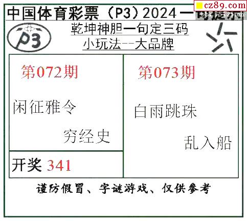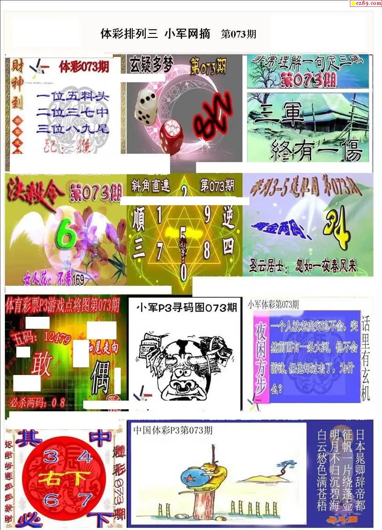 2024年073期牛彩网体彩P3画迷图谜汇总分享