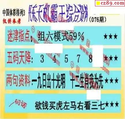 2024年076期牛彩网体彩P3画迷图谜汇总分享