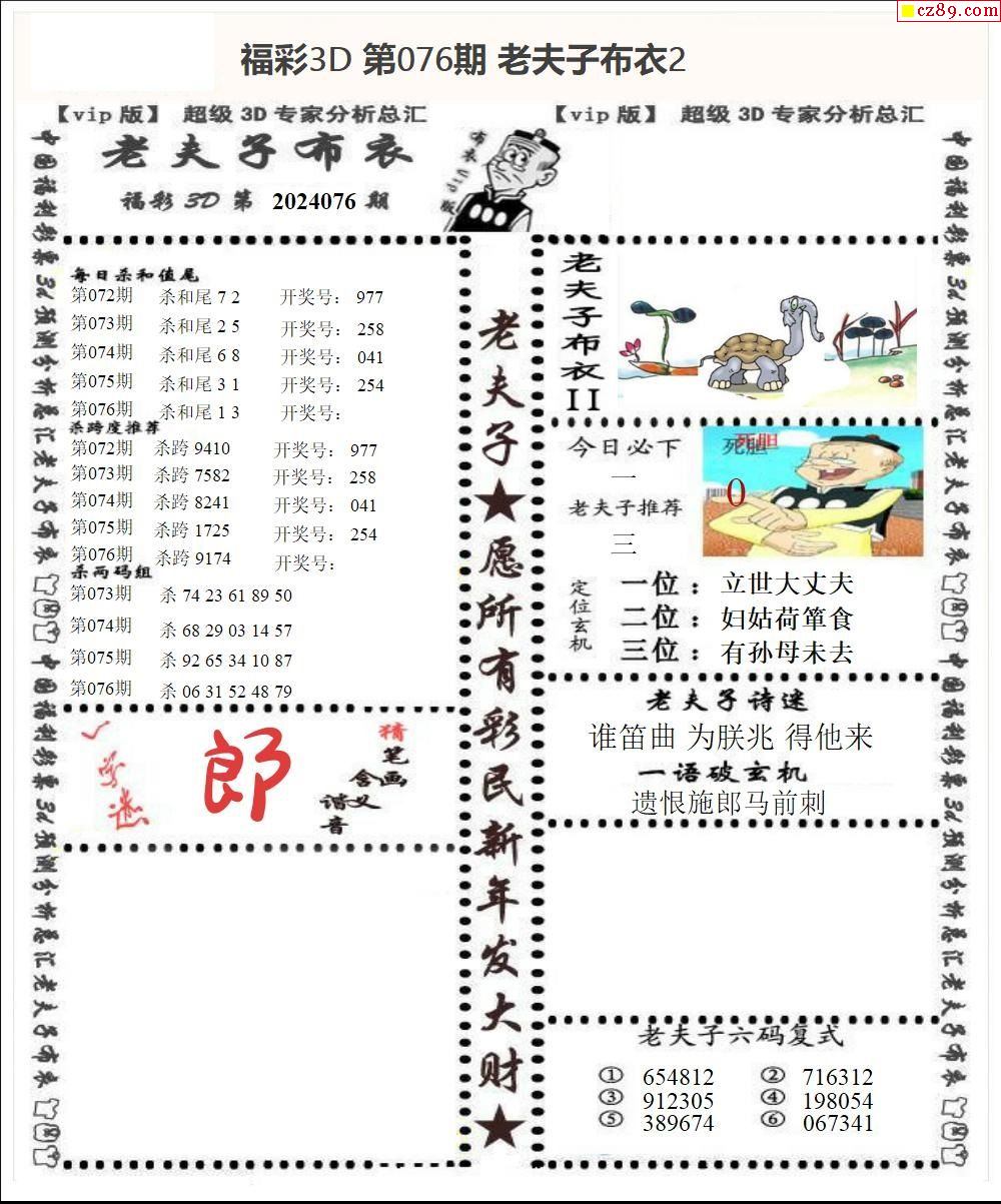 福彩3D2025334期 祁连牧哥百财纳福胆码图谜推荐