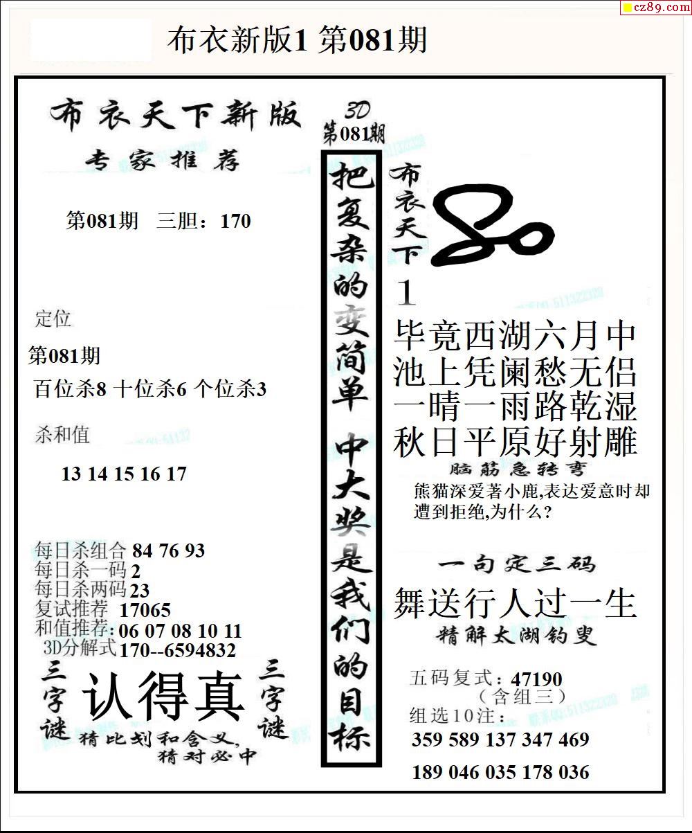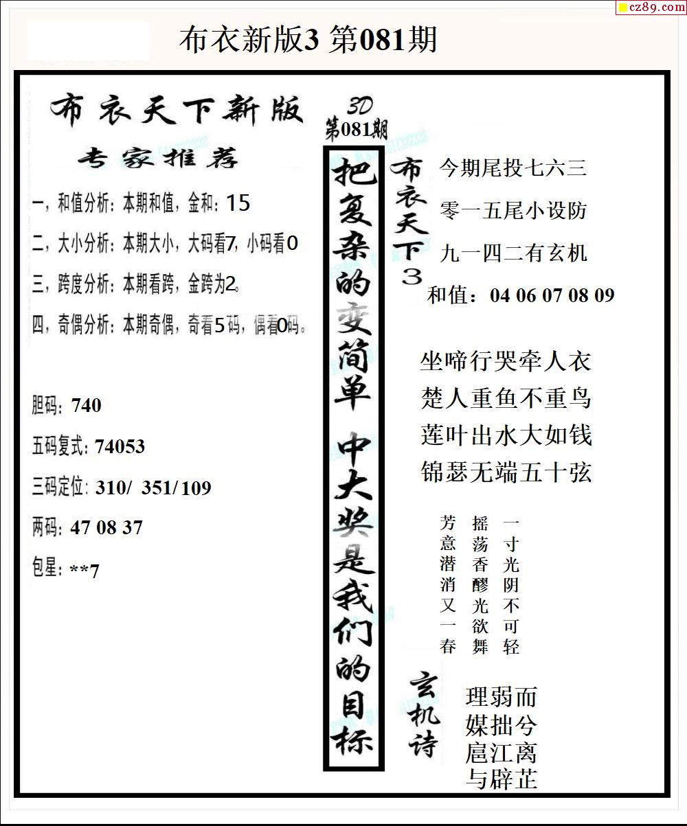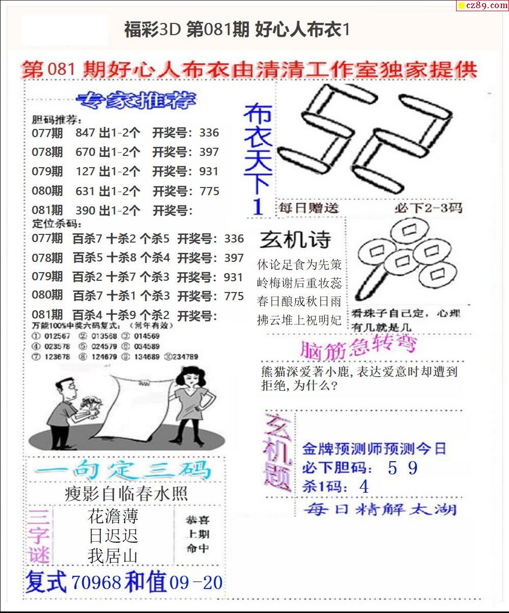 老夫子布衣2026077期3d图谜