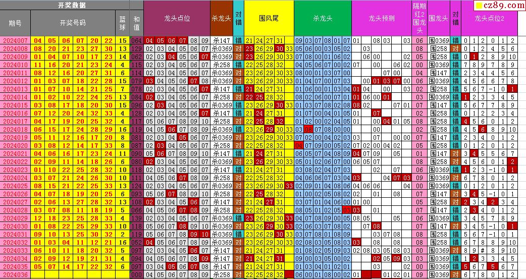 24年036期飞向阳光福彩双色球预测图表汇总