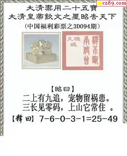 福彩3D2025334期 祁连牧哥百财纳福胆码图谜推荐
