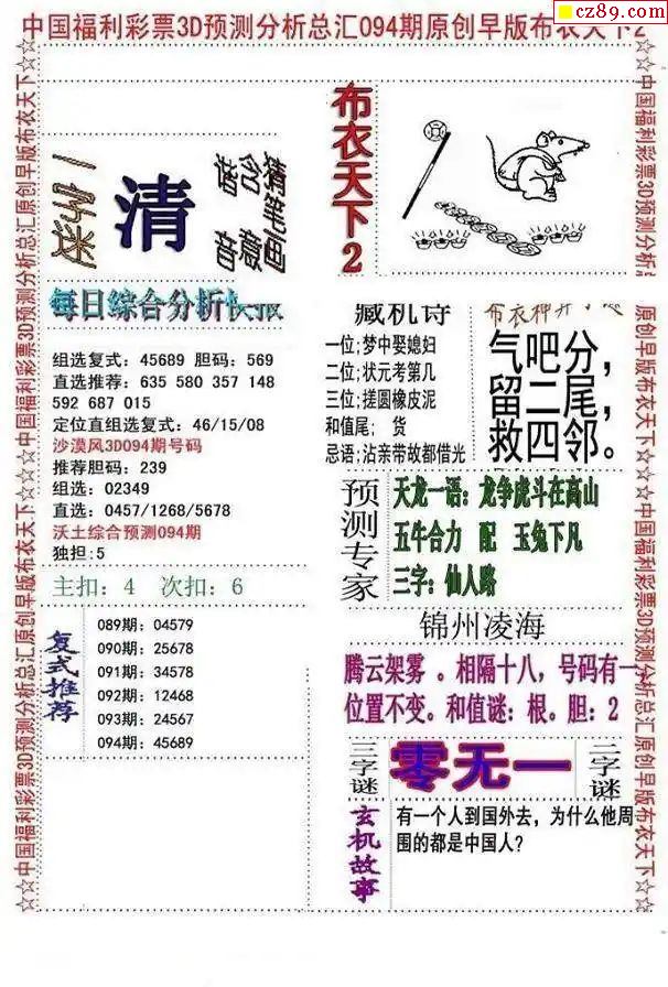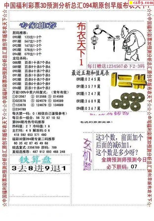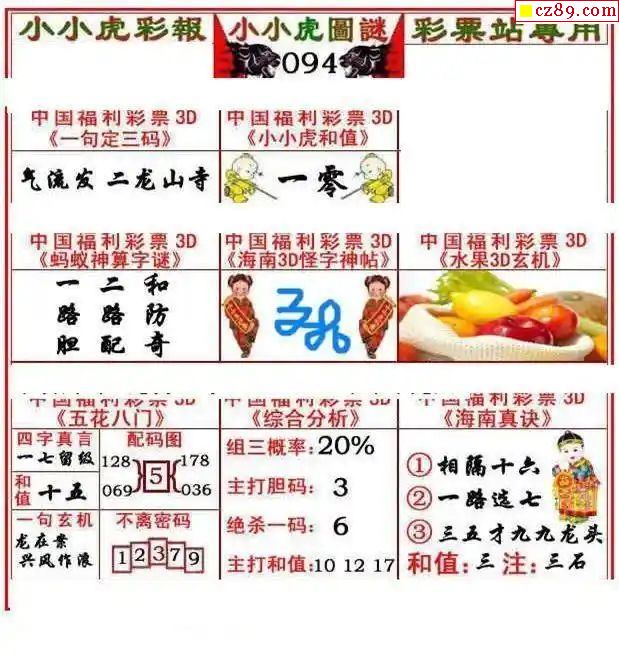 福彩3D2025337期 祁连牧哥百财纳福胆码图谜推荐