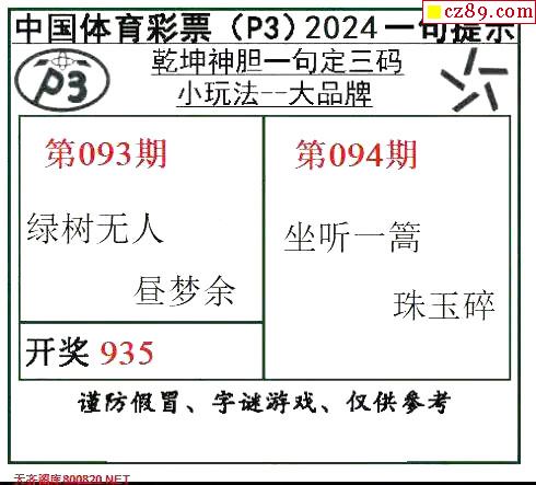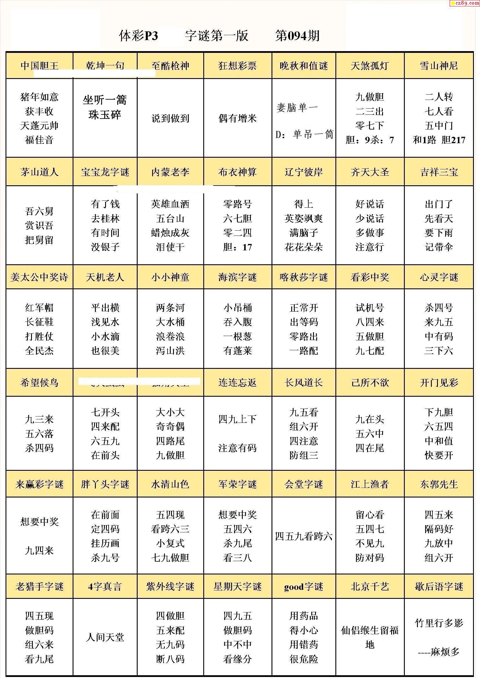 2024年094期牛彩网体彩P3画迷图谜汇总分享