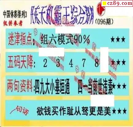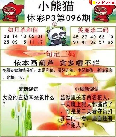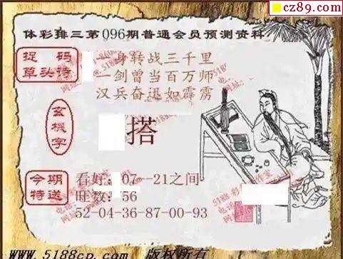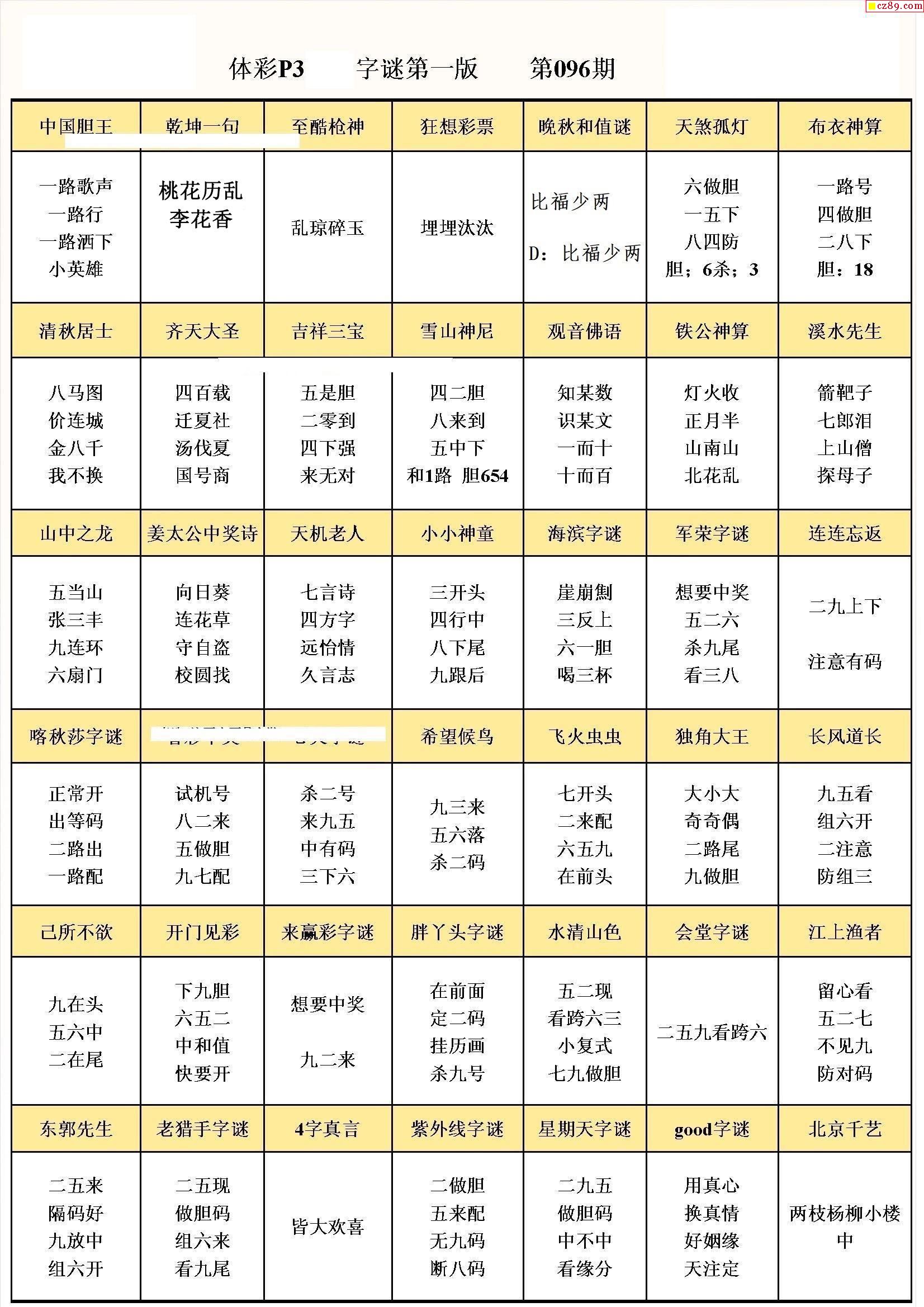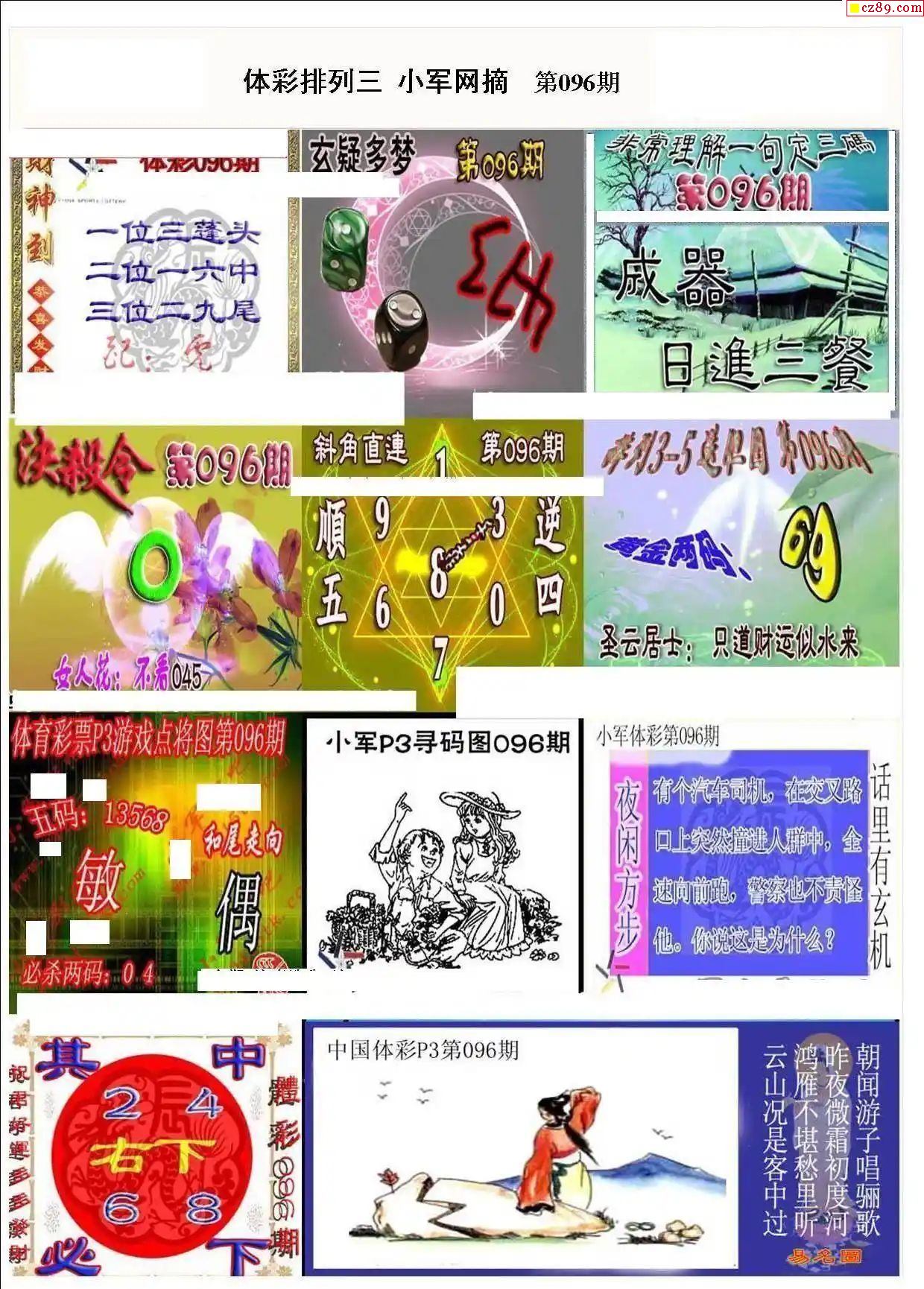 2024年096期牛彩网体彩P3画迷图谜汇总分享