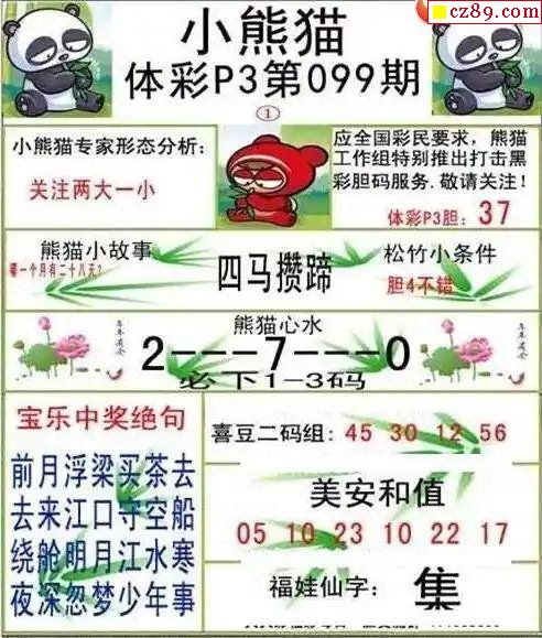 小熊猫2025328期体彩P3图谜