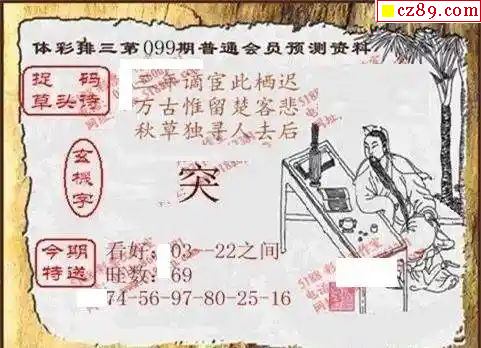 2024年099期牛彩网体彩P3画迷图谜汇总分享