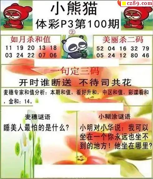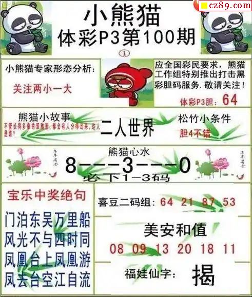 2024年100期牛彩网体彩P3画迷图谜汇总分享