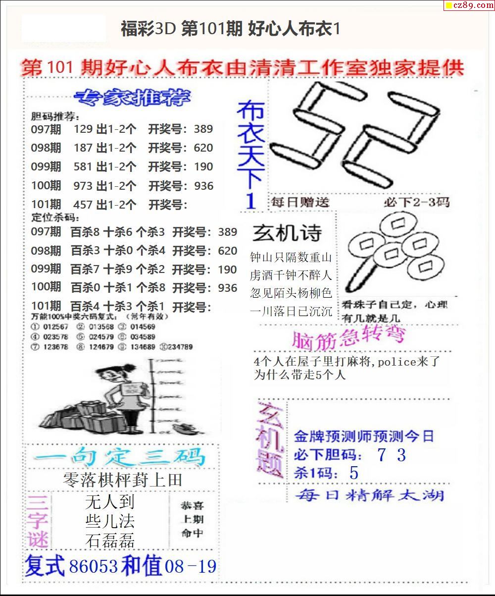 牛彩版3D字谜彩报图25年341期打印版