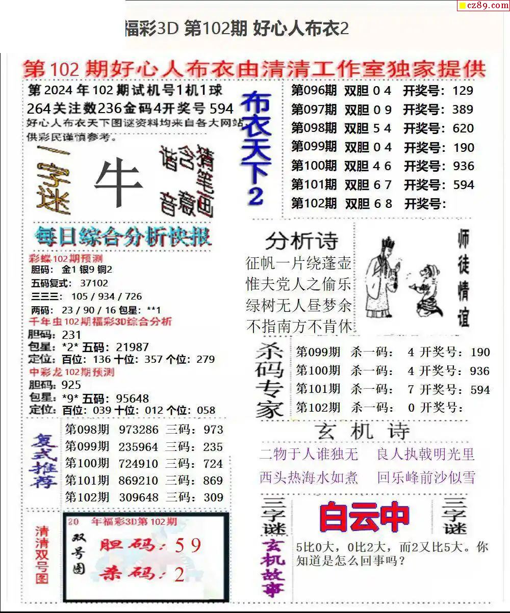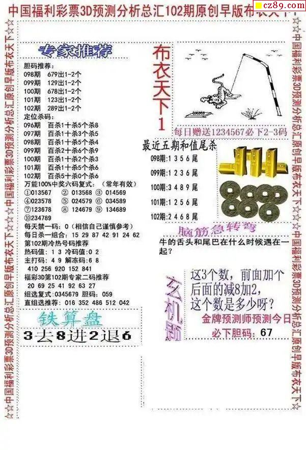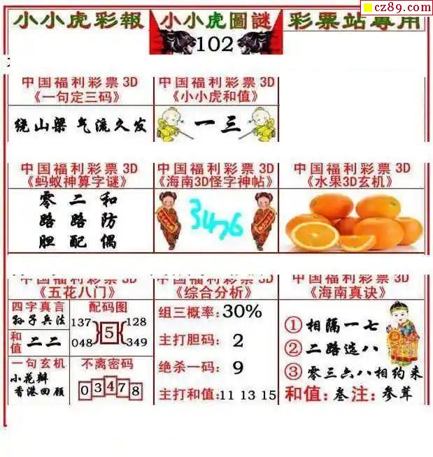 牛彩版3D字谜彩报图25年343期打印版