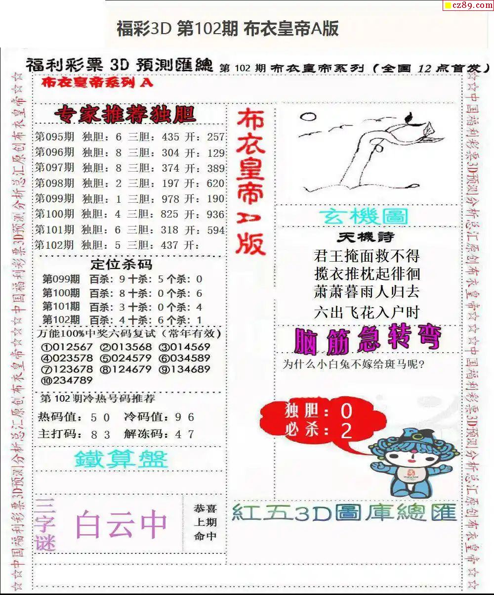 2025343期福彩3D图谜汇总