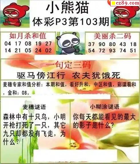2024年103期牛彩网体彩P3画迷图谜汇总分享