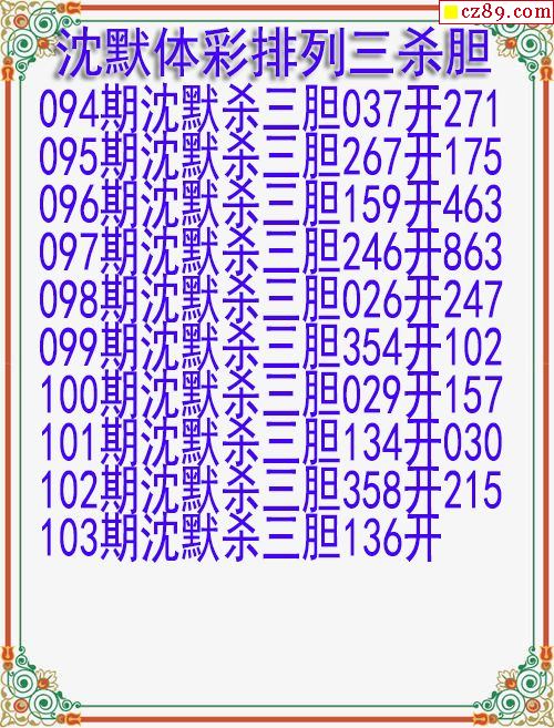 2024年103期体彩P3胆码杀码原创图总汇