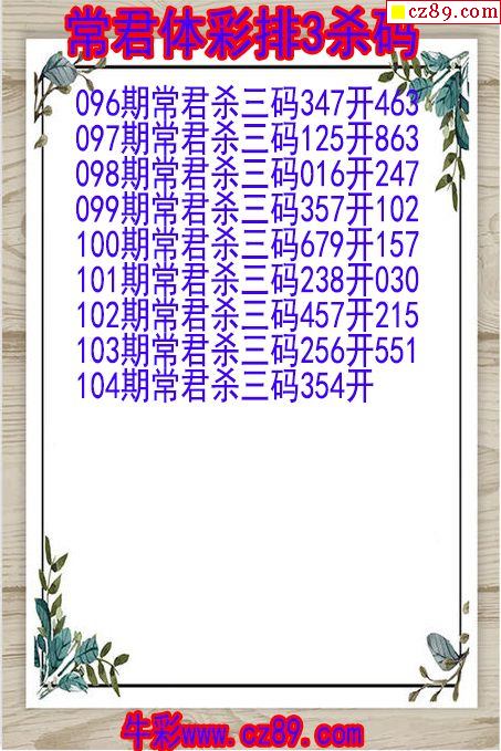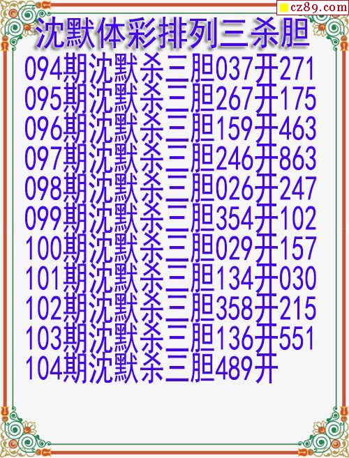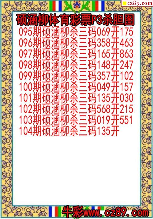 2024年104期体彩P3胆码杀码原创图总汇