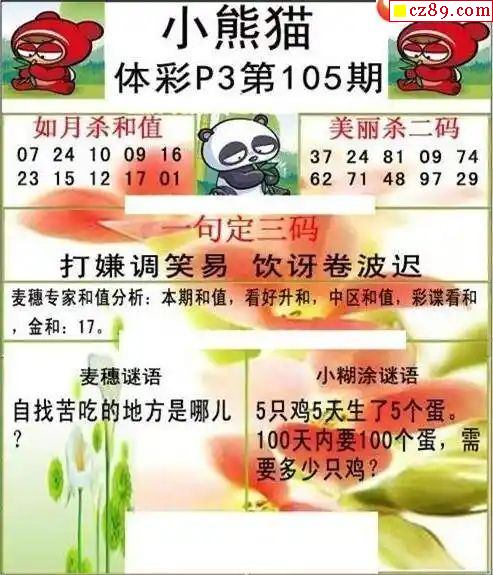 2024年105期牛彩网体彩P3画迷图谜汇总分享