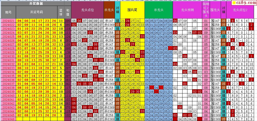 24年046期飞向阳光福彩双色球预测图表汇总