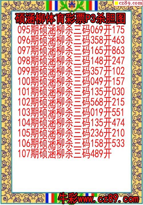 2024年107期体彩P3胆码杀码原创图总汇